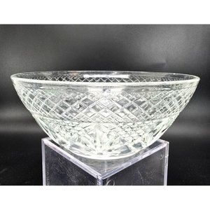 Vintage Cut Glass Serving Bowl With Intricate Diamond & Starburst Pattern JJ3815