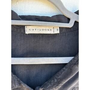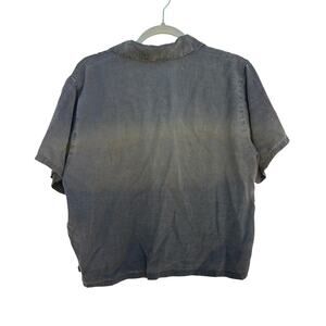 Vintage Cut Loose Button Down Shirt, Boxy, Embroidered, Black, Sz M