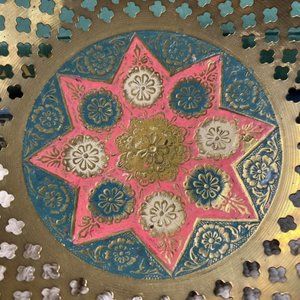 Vintage Cut Out Pierced Brass Bowl Enamel Boho Patina Distressed Made India