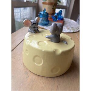 Vintage Cute Kitsch Cheese Butter Cover Lid Only Mice Playing Ceramic Retro