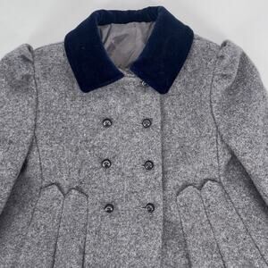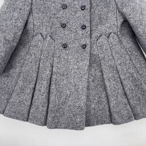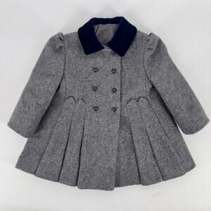 Vintage Cute Togs Girls Coat Gray Size 3 Wool Blend Pleated Button Accents Lined