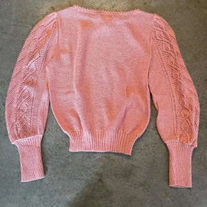 Vintage cutesy peach sweater with puff shoulders and pointelle sleeves #vintage #soft