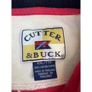 Vintage Cutter & Buck Men's Polo Shirt in 2XL is a fashionable addition to any wardrobe. The pink and white striped design is made from 100% cotton, offering both comfort and style.