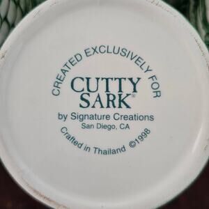 Vintage Cutty Sark Cup Mug 1998 Clipper Ships Green WHite Scotch Whiskey Set of 4