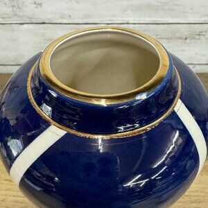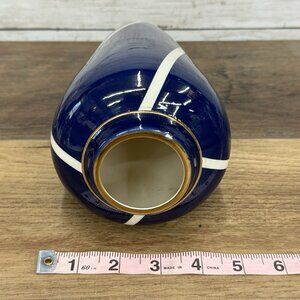 Vintage Cylinder Navy Vase With White and Gold Decoration McDonough Art Deco