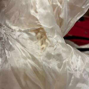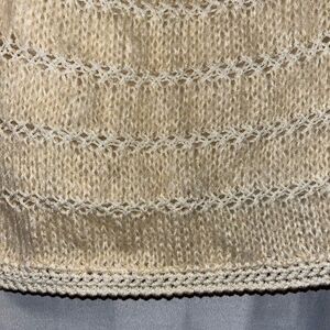 Cream color fuzzy short 3/4 sleeves Crochet details Mohair//Nylon//Wool//Crochet details. Hook eyes closures, has two areas that needs some mending but in overall good used condition! Measurements… (side to side// laying flat//closed//-more room if left open) pit: 19’ length: 22’