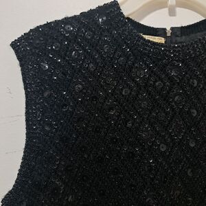 Vintage Cyn Les Wool Hand Beaded Sequin Sleeveless Top Size 40 Black