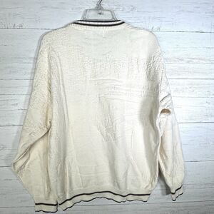 Vintage Cypress Links Golf V Neck Sweater Men’s Medium. 100% Textured Cotton With Embroidered Golfer: Armpit to armpit 25”, shoulder to hem 27”.