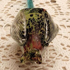 Vintage Czech Art Glass Flower Tulip Hand Blown Glass Turquoise Gold Long Stem