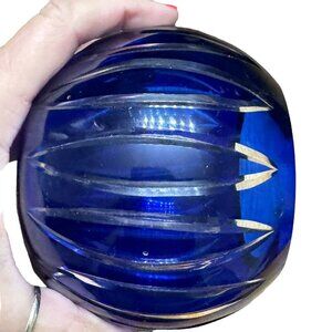 Vintage Czech Glass Cobalt Blue Rose Bowl Cut to Clear c.1965