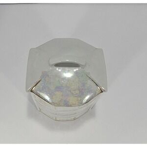 This vintage Czech porcelain sugar jar features a beautiful iridescent white glaze that reflects soft rainbow tones in the light. Marked on the base Victoria Czecho-Slovakia 3104, this piece showcases classic early 20th-century European porcelain craftsmanship.