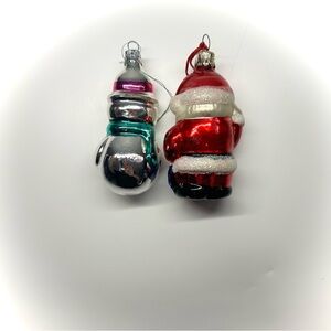 Vintage Czech Rebublic Mercury Glass Snowman & Santa Claus Ornament Handpainted