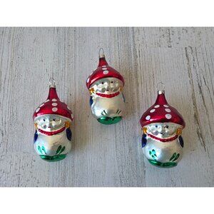 Vintage Czech mushroom Man mercury glass ornament set Xmas tree