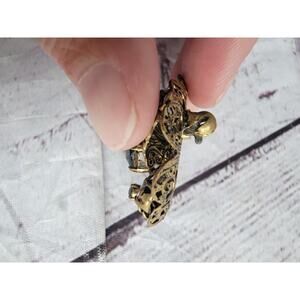 Vintage Czechoslovakia Brooch Faceted Blue Green Rhinestones Brass Filigree