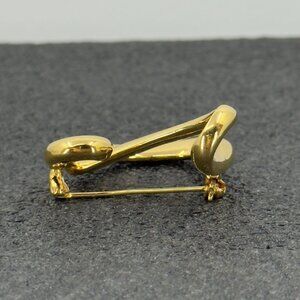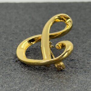 This vintage Anne Klein brooch features a cursive "D" initial in gold tone. It's a classic piece perfect for collectors or as a unique fashion accessory. Ideal for adding a touch of sophistication to any outfit.