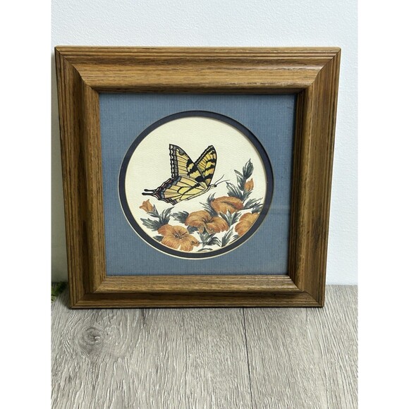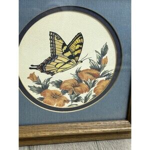 Vintage D Smith Minnesota Artist Print Butterfly And Flowers Matte & Framed 8”