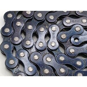 The Vintage D. TYC Chain from the 1970s 80s is a classic black steel bicycle chain with 53 links, perfect for road, city, or mountain bikes. Made in Taiwan, this unit is compatible with Shimano components and includes one set of chain. The durable and reliable TYC brand ensures high quality for your retro bike restoration project.