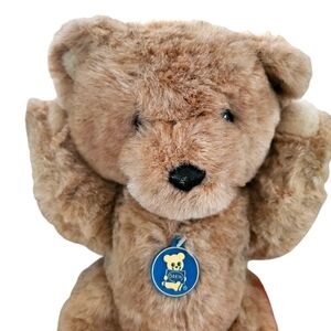 This vintage DAKIN Teddy Bear is a cuddly friend with jointed arms and legs. With a blue tag from 1986, it is a rare find for collectors. The bear is about 14" in size and is recommended for ages 3 and up. It is a great addition to any stuffed animal collection and is perfect for kids and adults alike. Made in Korea, Republic of, this bear is sure to bring joy to anyone who owns it.