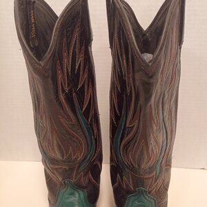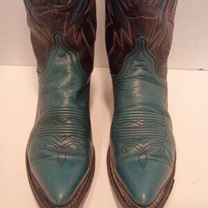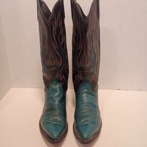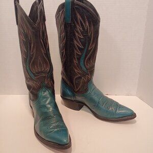 Vintage DAN POST Black and "Aqua Cowgirl Boot" Leather Size 6.5M Women Snip-toe