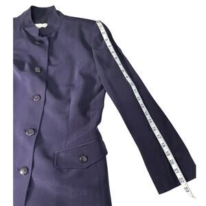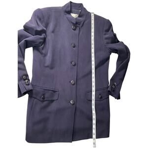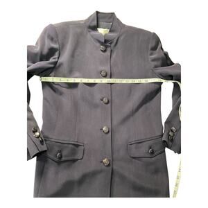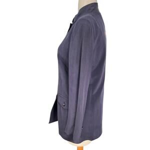 Vintage DANA BUCHMAN Petites Size 8P 100% Silk Navy Blue Fill Button Down Blazer