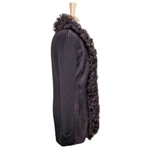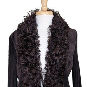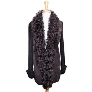 Vintage DANA BUCHMAN Suede/Wool Open Jacket/Coat + Lamb Fur Collar