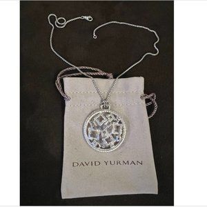 Vintage DAVID YURMAN Diamonds Round Pendant NECKLACE 18" Sterling Silver