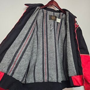 Vintage DAVIS JAMES Red and Black Lined Jacket with Patterned Accents Size Large