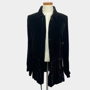 Vintage DB Life Black Velvet Cinch Waist Shirt Jacket
