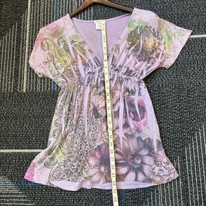 Vintage DB Sport Y2K Top V Neck babydoll purple peacock floral