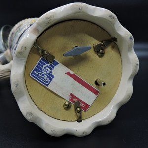 Good condition overall with clean colors and scenes. Slight wear on the gold color paint, glazing may have some slight signs of crazing throughout but nothing that is overly noticeable. Metal lid is a little loose on the handle and wobbly but is function and attached with no signs of coming off. Scuffing marks on the base as seen in the photos. Mapsa label has wear and peeling.
