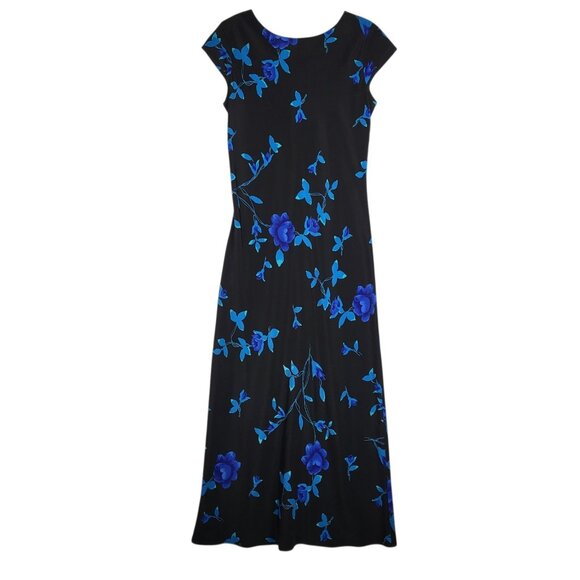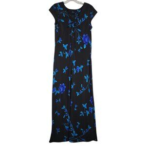 Vintage DBY Dark Floral Dress 7/8 Blue Black Maxi Fairy Whimsigoth Lace Back
