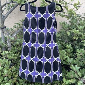 Vintage DBY Purple & Black Abstract Patterned Sleeveless Sheath Dress Sz 4 EUC. A nod to mod. Patterned abstract sheath dress-inspiration 60’s-70’s. Zipper back. 97%cotton 3%spandex. Ships from a smoke and pet free home.