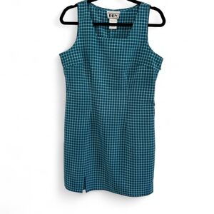 Vintage DBY Teal Checkered Women's Dress size 9 D22
