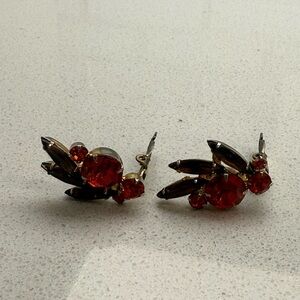 Vintage D&E Juliana Clip On Earrings Orange Rhinestones Mid-Century Modern MCM
