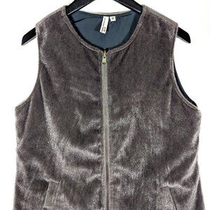 Vintage DEBBRAH Faux Fur Full Zip Vest Womens Medium Stone Gray Calf Hair Jacket