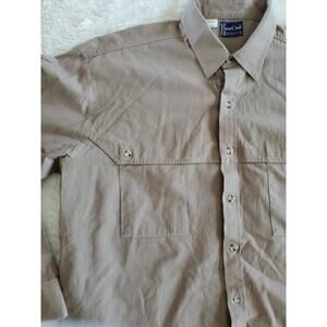 The Vintage DEE CEE Blue Khaki Work Shirt is a stylish button-up made of 100% cotton chambray fabric in size X-Large. With a solid pattern, long sleeves, and a point collar, this shirt exudes a classic yet timeless appeal. Perfect for men who appreciate quality craftsmanship and vintage style, this shirt is a versatile addition to any wardrobe. Made in the United States, this DEE CEE shirt is sure to become a staple piece for those who appreciate traditional yet on-trend fashion.