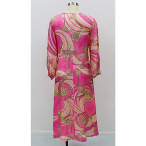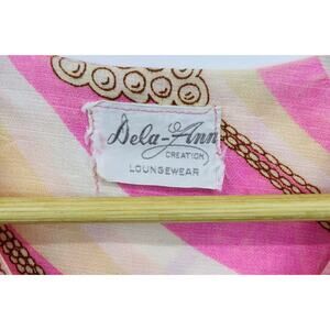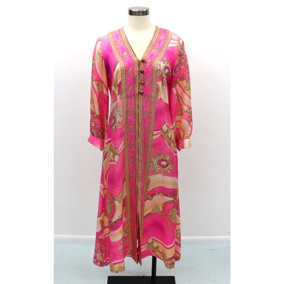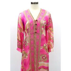 Vintage DELA-ANN Novelty Pink Glam Jewelry Print Lounge Kaftan Dress 1960's M