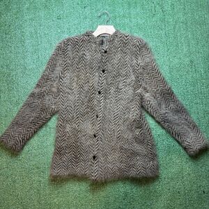 Vintage DELAWARE STREET Avant Garde FOX Fur CASHMERE Cable Knit Jacket USA SZ S