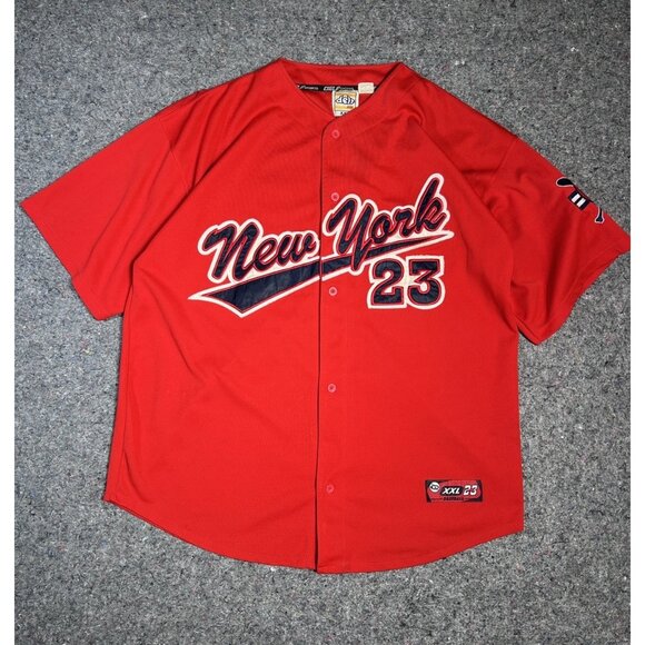 Vintage DELF New York Baseball Jersey Men's Button Up Red Embroidered #23 XXL