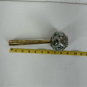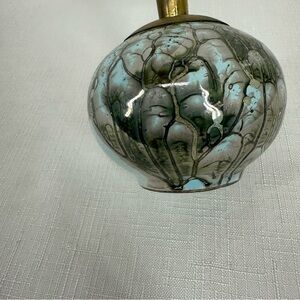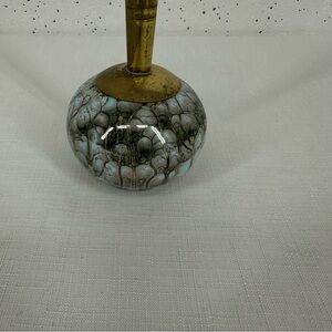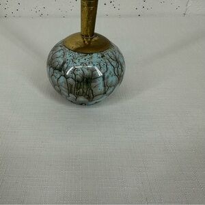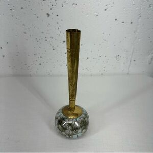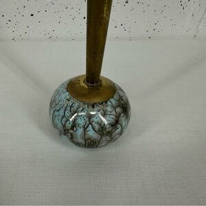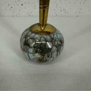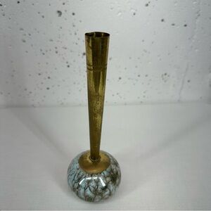 Vintage DELFT Holland Art Deco Handpainted Bud Vase. Some tarnishing on brass and bent lip besides that in good preowned condition.