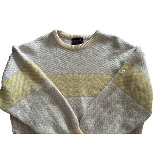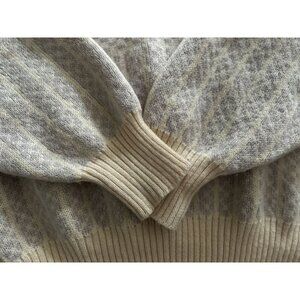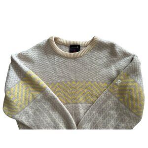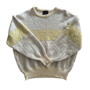 Vintage DEMETRE 100% Wool Knit Sweater Beige & Yellow Geometric Pattern Size XLa