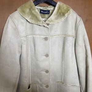 Vintage DENIM & CO Coat Faux Suede Fur Shawl Collar Pockets Button Women M Beige