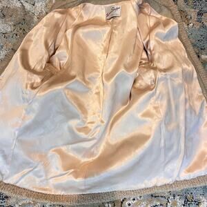 This vintage faux fur coat by D'Esprit features a luxurious beige faux fur with textured knit trim. Designed for a chic, retro-inspired look. • Button and hook/eyefront closure