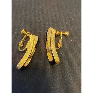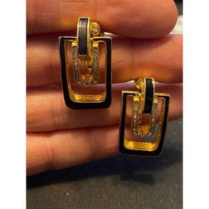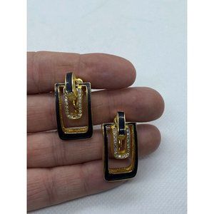 Vintage DG Signed Door Knock Black/Gold Clip-on Earrings with Rhinestones