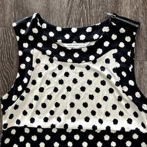 DVF 100% Silk Polka Dot Sleeveless Shift Dress Black White Size 6 Vintage Mod