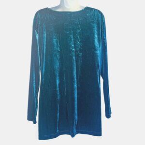 Vintage DIANE VON FURSTENBERG 90s Emerald Velvet Filigree Burnout Tunic Top