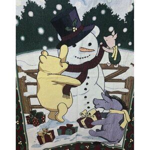 Vintage DISNEY Classic Winnie-the-Pooh Christmas Snowman Throw Tapestry 45 x 65