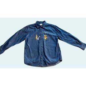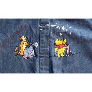 Cool vintage Disney button down shirt. Circa 90s / 00s. Full button. Features embroidered patches of Pooh, Piglet, Tigger, and Eeyore looking at a shooting star. 100% cotton. Size small. Pre-owned and gently worn in really nice condition!