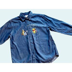 Vintage DISNEY Store 90s 00s Y2K Winnie the Pooh Embroidered Shirt Top Sz Sm