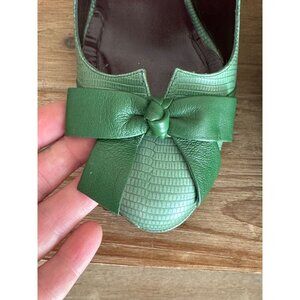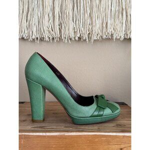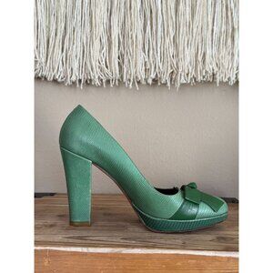 Vintage DKNY Artemisia Made in Italy Green Leather Bow Platform Pumps Size 8.5